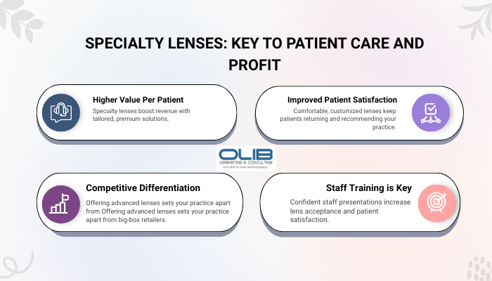 By focusing on specialty lenses, practices can elevate both patient care and business growth, ensuring long-term stability in a competitive market. OLIB Consulting works with practices to strengthen specialty lens strategies and train staff for greater success.